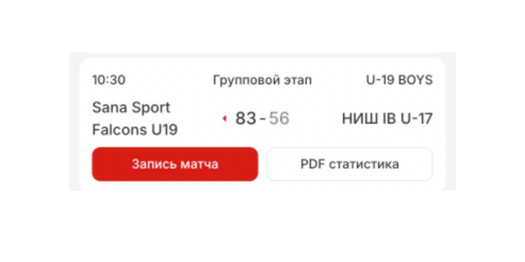Sana Sport / Falcons U19 83 – 56 НИШ IB U - 17